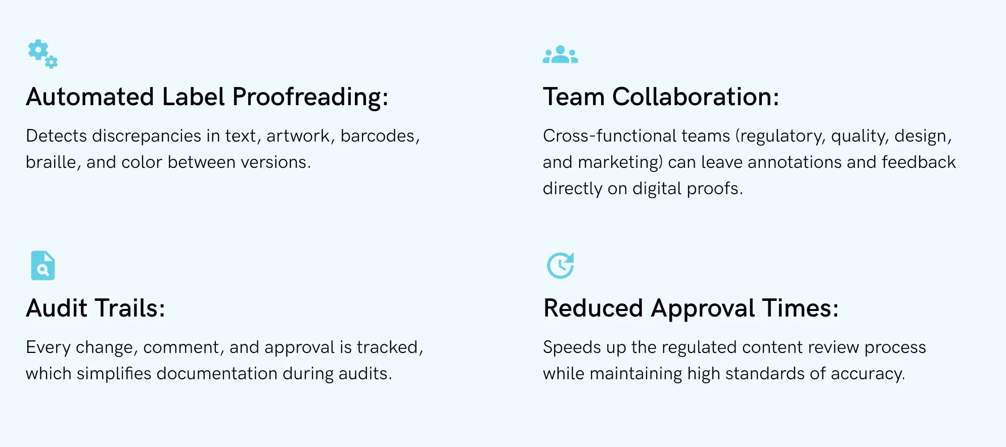 When automated proofreading tools are integrated into the artwork labeling process, those working in regulated industries, such as pharmaceutical companies and CPG, benefit from faster time-to-market, fewer errors, and stronger brand protection.