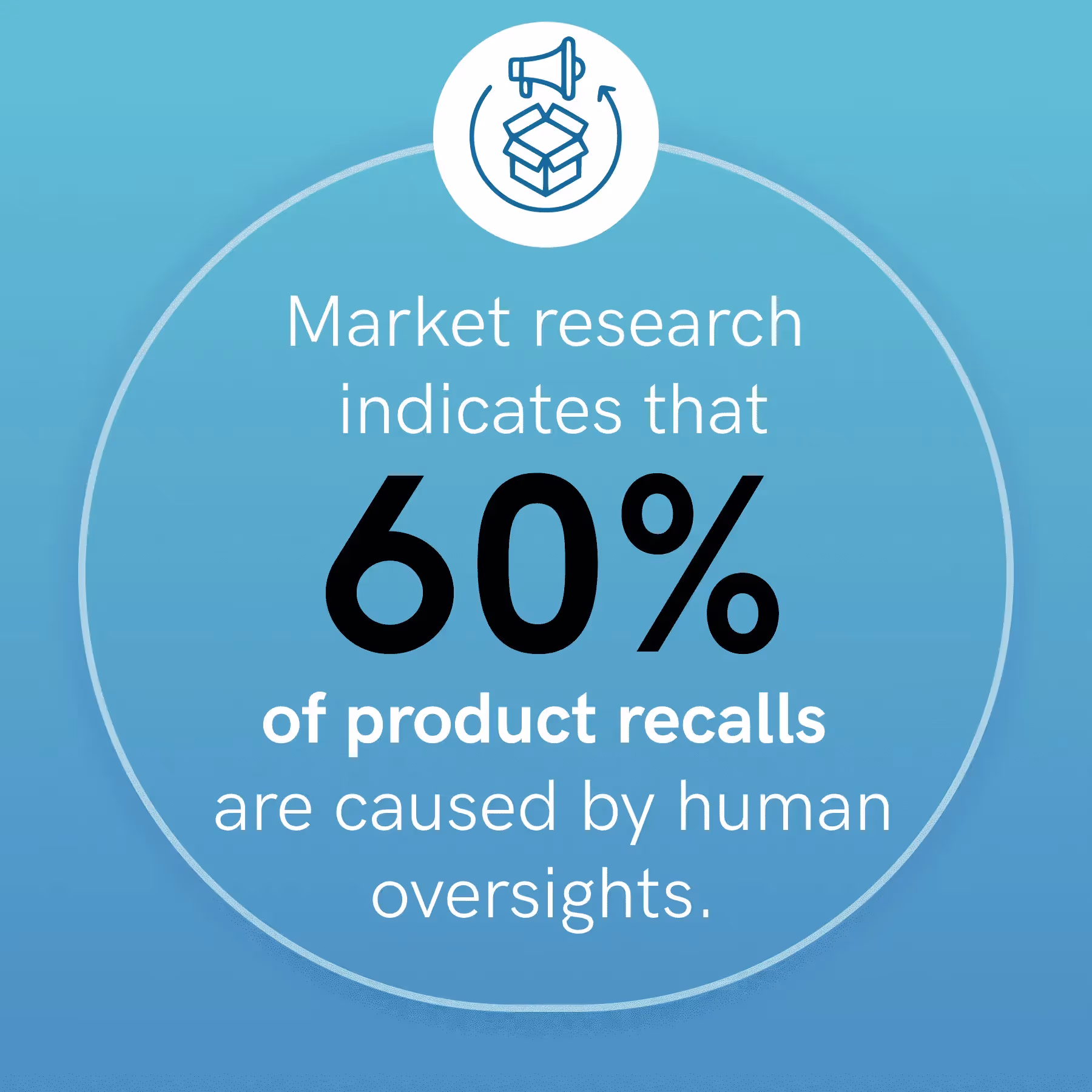 A packaging or label error doesn’t have to be fraudulent to be costly. In fact, a great deal of mistakes are simply caused by human error. Market research indicates that 60% of product recalls are caused by human oversights.
