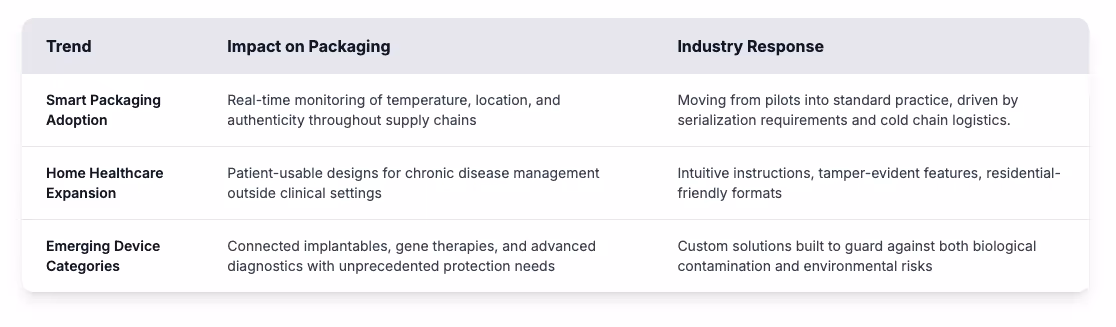 - Device complexity: Smart devices and implantables now demand packaging that maintains sterility and data integrity while surviving global supply chains.