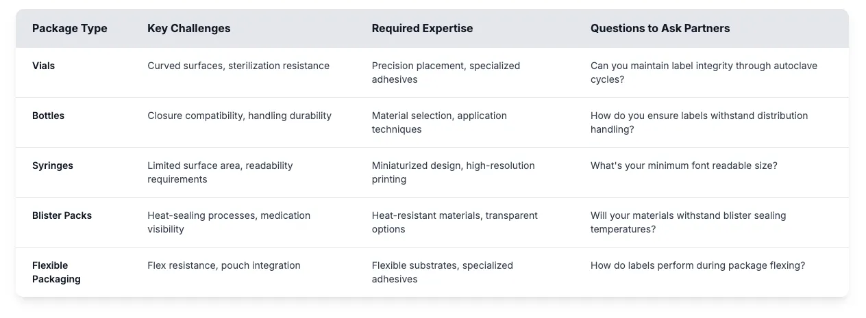 Your partner should demonstrate expertise across the packaging formats relevant to your product portfolio because each packaging type presents unique labeling challenges.