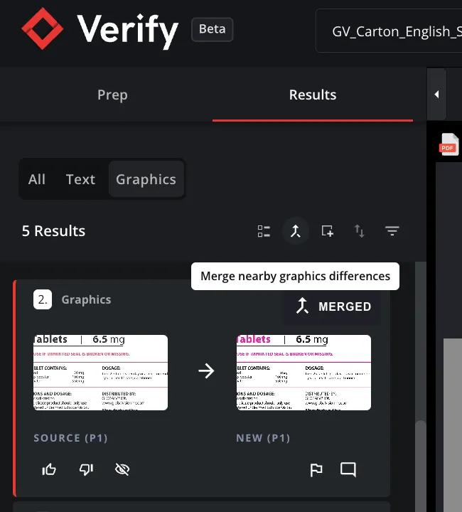 With Merge Graphics Differences, you can group granular, adjacent, graphics changes into unified results. This feature cuts through unnecessary detail to present you with the cleanest, most digestible reports possible.