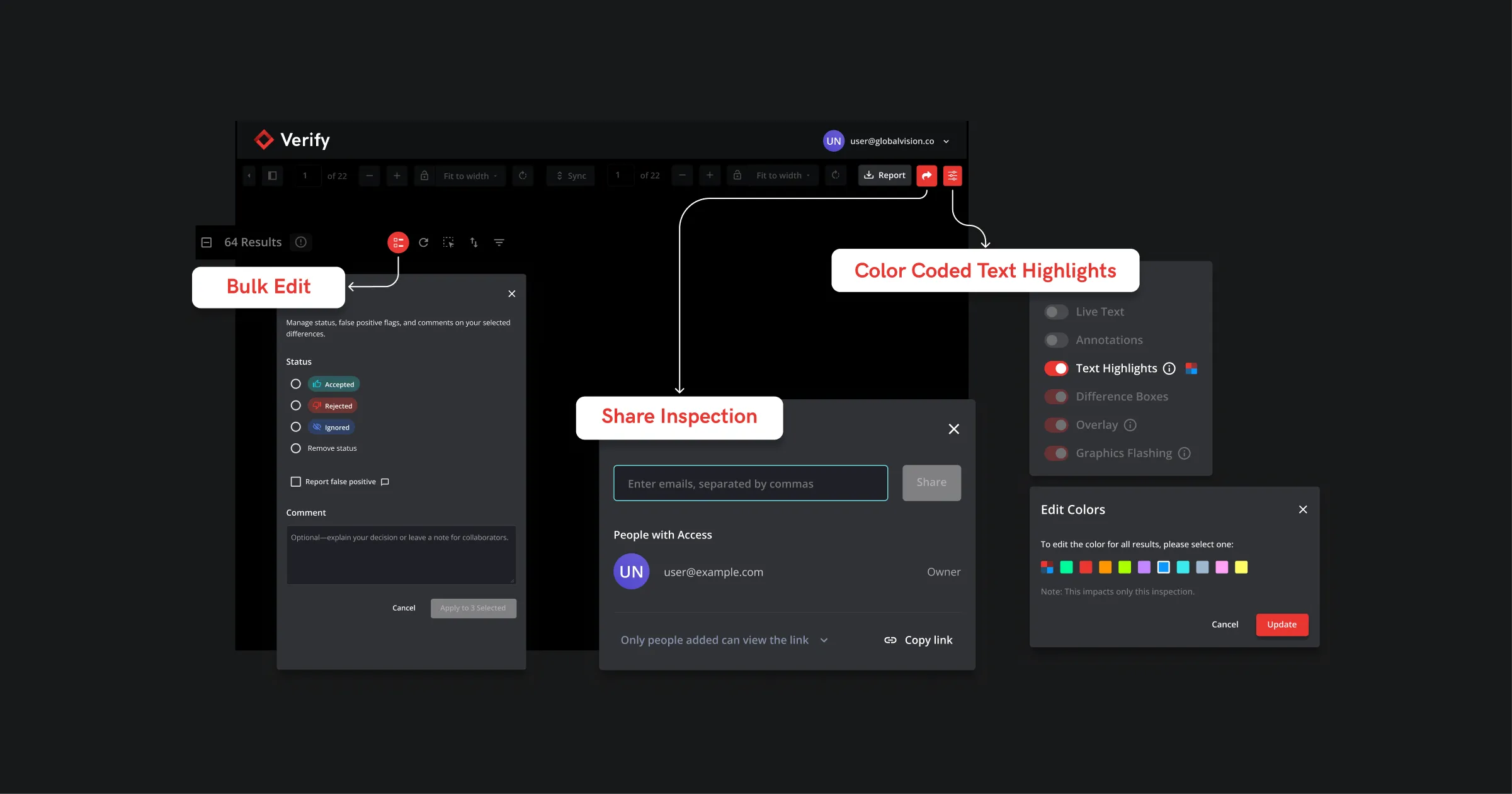 Bulk Reviews allows you to review multiple differences in a single click and choose to apply custom statuses, comments, or false positive flags to multiple results at once.
