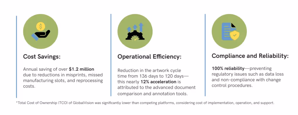 “The Artwork Design Team, Regulatory Teams, Quality Partners, and Graphic Service Providers—across all four of those functions – the time savings are associated with the move to GlobalVision.”