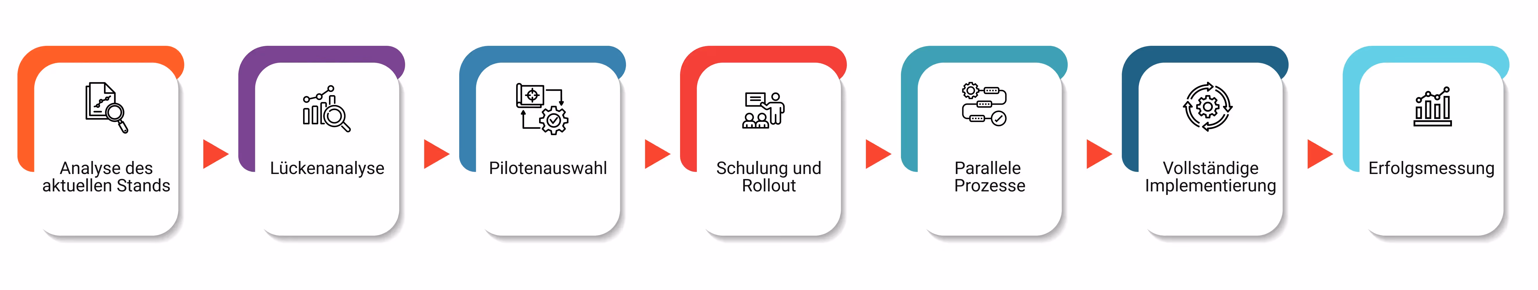 Eine erfolgreiche Umsetzung von Änderungen erfordert die Einbindung aller Beteiligten und die Bereitstellung von rollenspezifischen Schulungen, um das Vertrauen in neue Prozesse zu stärken. Hinzu kommen eine schrittweise Umsetzung, eine klare Kommunikation über die Vorteile und frühzeitige Erfolge, um abteilungsübergreifend für Dynamik zu sorgen.
