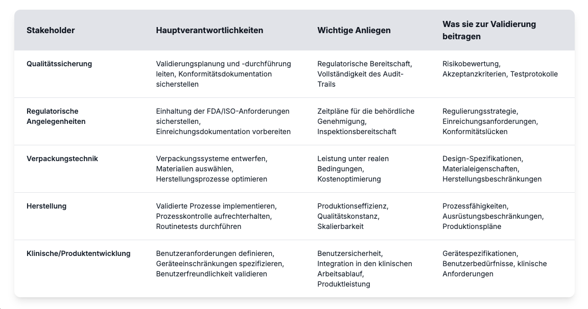 Die Validierung wird in der Regel von der Qualitätssicherung geleitet, doch der tatsächliche Erfolg hängt von der abteilungsübergreifenden Koordination ab. Viele Verzögerungen sind auf Unklarheiten über die Rollen oder auf Lücken in den Erwartungen zurückzuführen. Wenn Konstruktions-, Regulierungs- und Fertigungsgruppen ihr Fachwissen synchron einbringen, wird die Validierung weitaus effizienter und zuverlässiger.