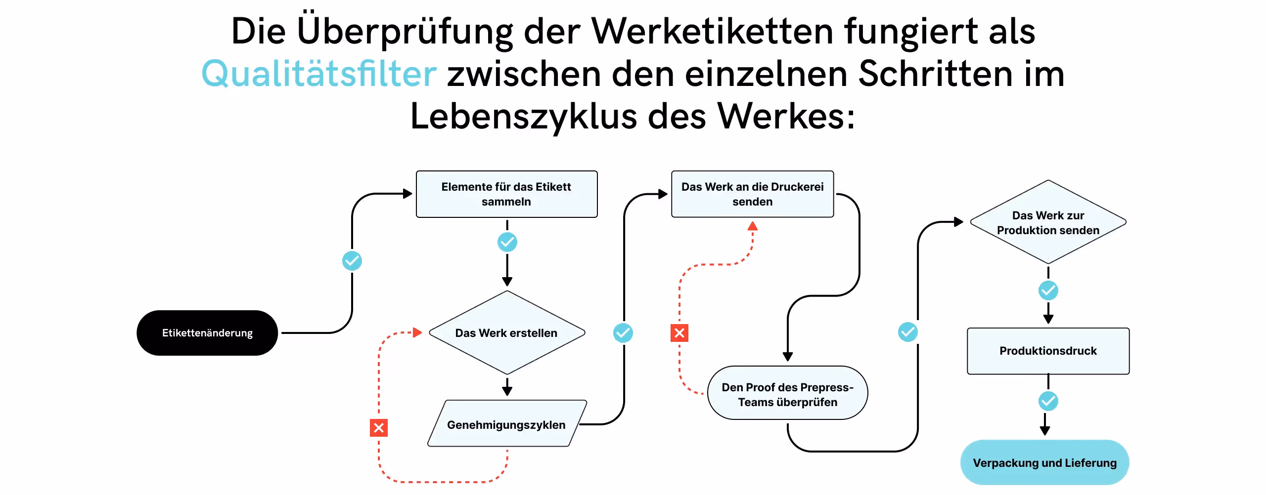 In regulierten Branchen umfasst ein typischer Lebenszyklus von Verpackungskunstwerken mehrere Übergaben, von den regulatorischen Teams über die Grafikdesigner bis hin zur Produktion. Ohne einen reibungslosen Ablauf beim Korrekturlesen birgt jede Übergabe das Risiko von Fehlern.