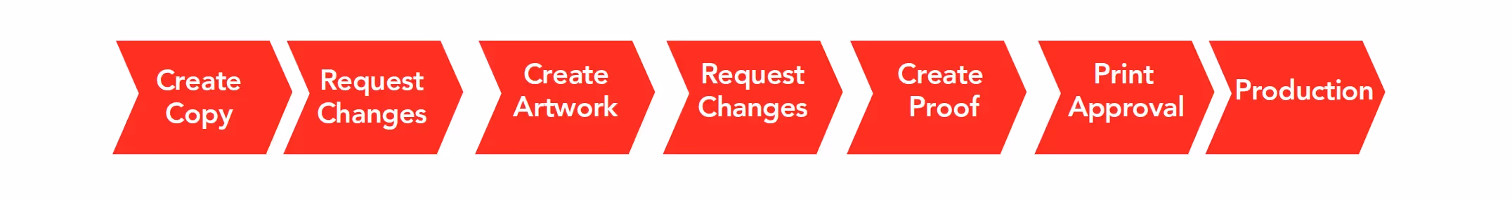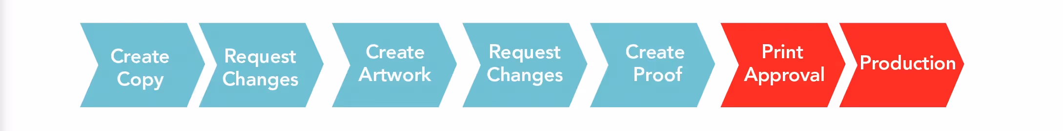 Das LCD sendet das Kunstwerk dann an die Rechts- und Marketingabteilung zurück. An dieser Stelle müssen möglicherweise auch viele andere Gruppen und Abteilungen den Grafikentwurf überprüfen. In der Regel wird diese Aufgabe mithilfe eines Genehmigungssystems für Kunstwerke verwaltet.