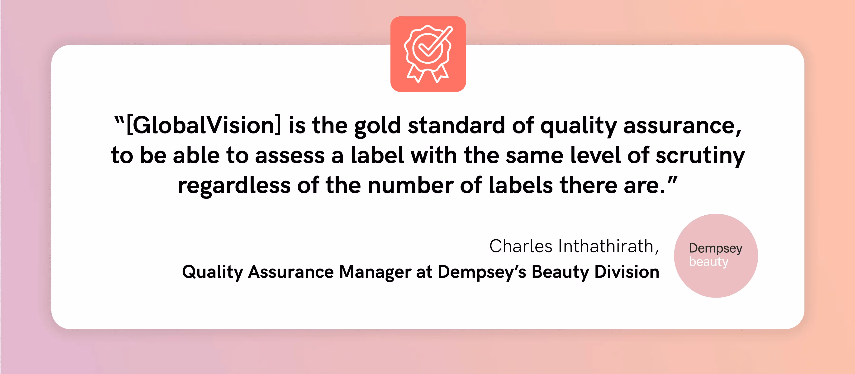 Se surpasser pour satisfaire et dépasser les besoins de ses clients sera toujours la priorité absolue de la division beauté de Dempsey. C'est pourquoi ils continuent à utiliser GlobalVision dans le cadre de leurs évaluations d'étiquettes afin de garantir l'exactitude, la crédibilité et la qualité complètes de chaque produit mis sur le marché.