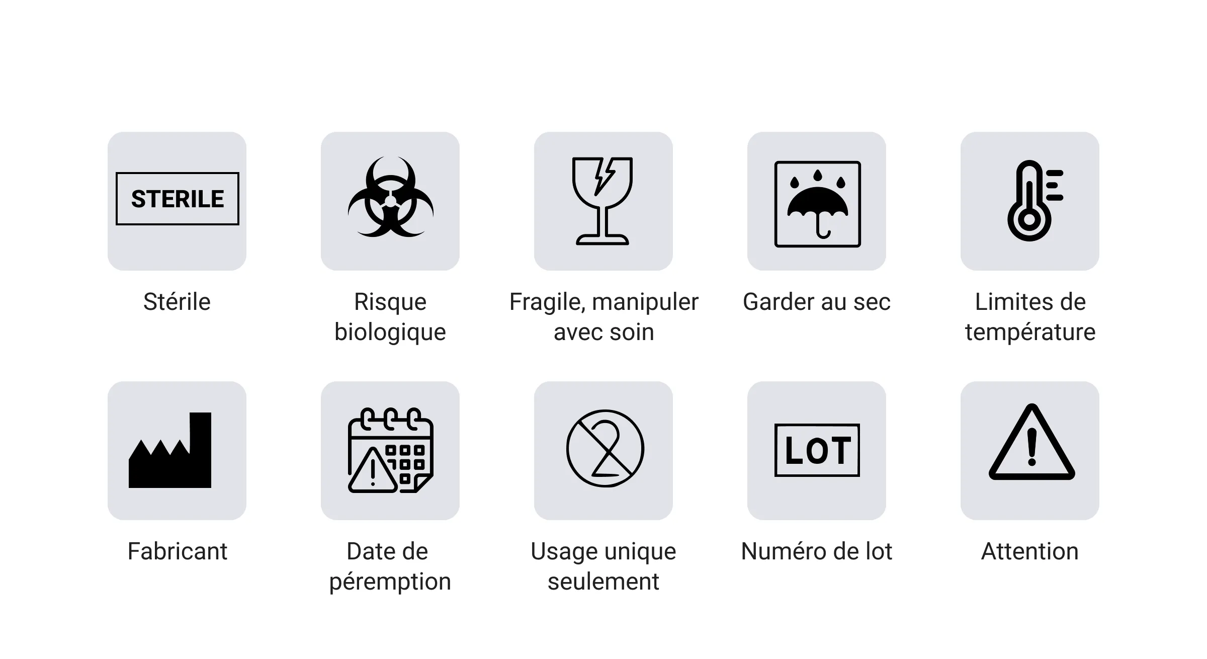 La mise à jour Norme EN ISO 15223-1:2021 vous propose de nouveaux symboles reconnus au niveau international qui peuvent remplacer certaines informations textuelles sur vos étiquettes, ce qui est utile lorsque vous êtes confronté à des contraintes d'espace ou à des exigences multilingues. La norme harmonisée inclut 25 nouveaux symboles en plus de ce qui était disponible dans la version 2016. Ils couvrent tout, des symboles actualisés des systèmes de barrière stérile aux nouvelles exigences en matière d'identification des implants. Les nouveaux symboles clés incluent des indicateurs d'emballage stérile améliorés, des avertissements sur les risques biologiques et des symboles spécifiques pour les cartes d'identification des dispositifs implantables qui répondent aux véritables défis d'étiquetage auxquels les fabricants sont confrontés dans le cadre du MDR.