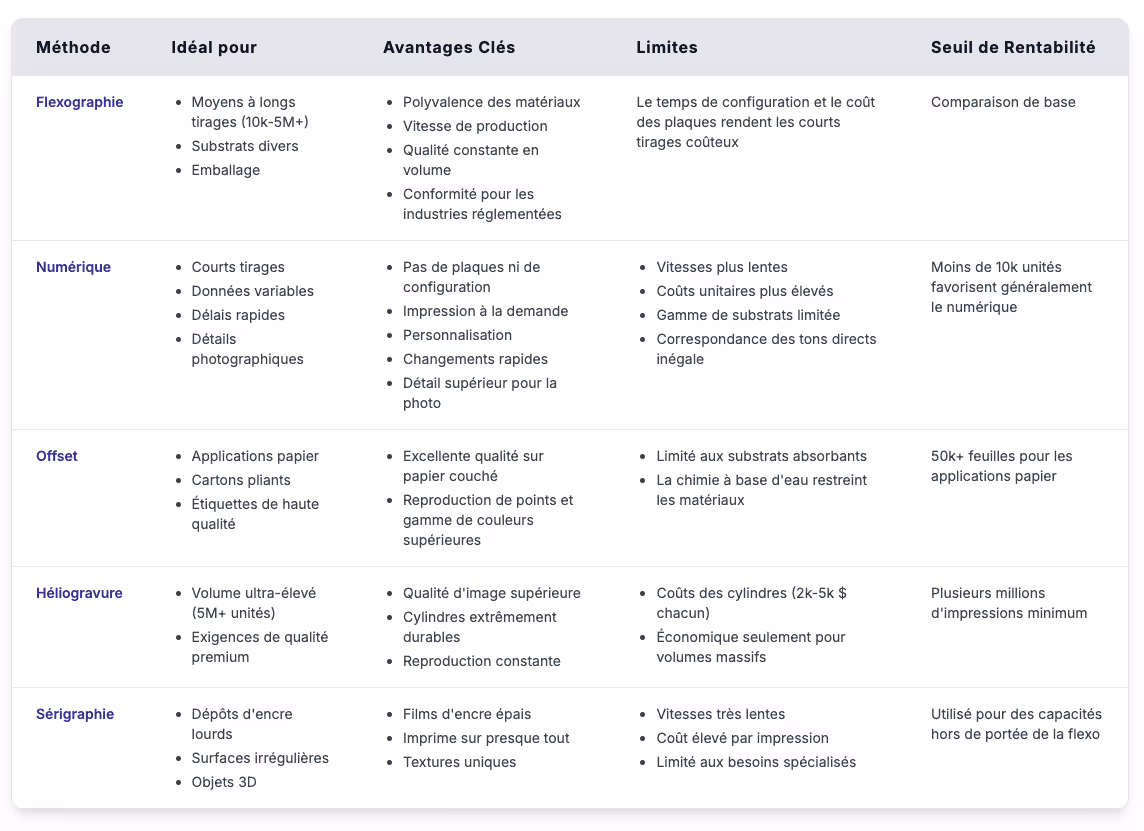 Comparaison de l'impression flexographique avec d'autres méthodes