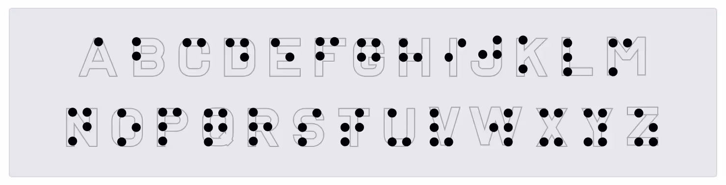 - Système à six points: Le braille traditionnel utilise une grille de 2 x 3 points, où différentes combinaisons représentent des lettres, des chiffres et des symboles.
