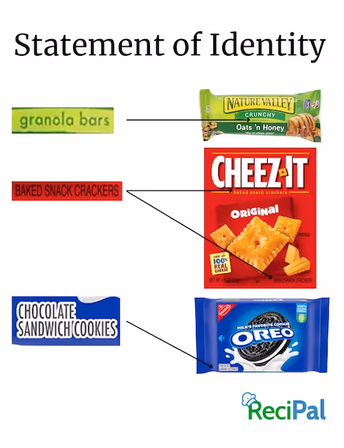 Une déclaration d'identité est le nom obligatoire d'un produit qui décrit avec précision sa nature et sa fonction.