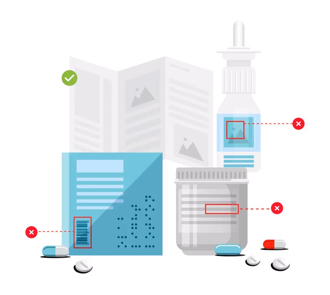 La relecture automatisée peut être mise en œuvre à chaque étape du flux de travail pharmaceutique afin de garantir qu'aucune erreur n'a été créée ou introduite. Tout d'abord, les exigences relatives aux produits et aux médicaments sont soumises aux organismes de réglementation qui compilent ensuite les informations dans des documents d'information destinés à être examinés par l'organisme de réglementation approprié. La mise en œuvre d'un système de contrôle qualité numérique à ce stade permettrait de garantir que tous les documents de copie sont exempts d'erreurs et exacts pour les révisions internes et les soumissions réglementaires en inspectant automatiquement les documents contenant beaucoup de texte caractère par caractère. Au stade de la création des illustrations, les fichiers d'illustrations peuvent être inspectés automatiquement pour s'assurer qu'aucune erreur n'a été introduite lors du processus de création du fichier. Ces erreurs incluent souvent des erreurs de conformité telles que des erreurs de logo, des informations incorrectes et des défauts de codes-barres. Les inspections numériques peuvent être poursuivies au fur et à mesure que les fichiers sont édités pour s'assurer qu'aucune erreur involontaire n'a été ajoutée.