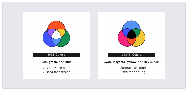 CMYK stands for Cyan, Magenta, Yellow, and Key (Black). It’s a color model used in printing to create full-color images by mixing these four ink colors in different amounts. Unlike colors on a screen (RGB - red, green, blue), which use light, CMYK uses ink on paper.